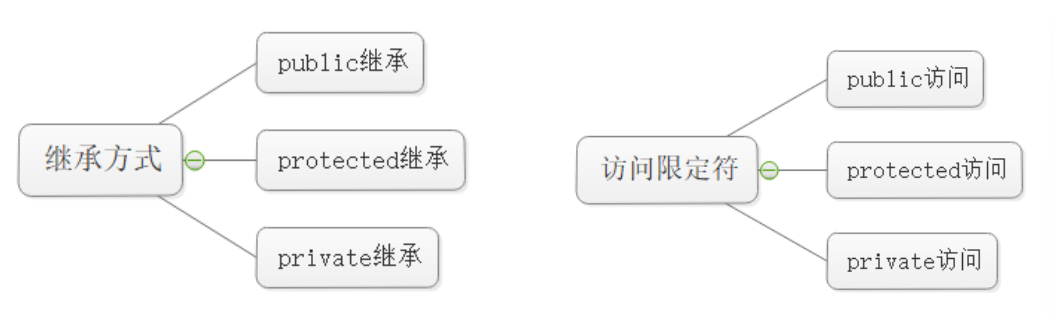 使用关键字class时默认的继承方式是private,使用struct时默认的继承方式是public,不过最好显示的写出继承方式。