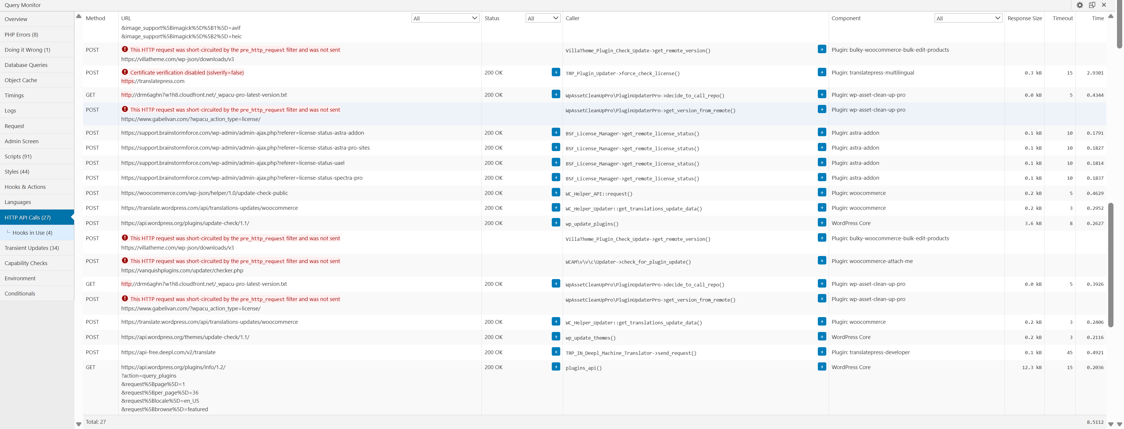 在Query Monitor看到的一些非常影响速度又没有用的HTTP请求时,可以使用这两个插件进行封禁,这两个插件我用的不多,因为感觉不是算特别好用,大家可以自行体验一下,如果有更好用的替代插件欢迎大家评论区反馈