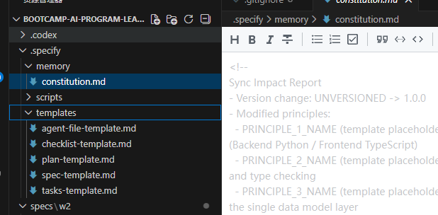 constitution.md初始通常是一份模板- 再次执行