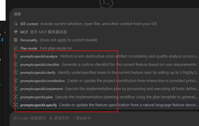 5. 在 VS Code / Codex 中触发 Spec Kit 命令