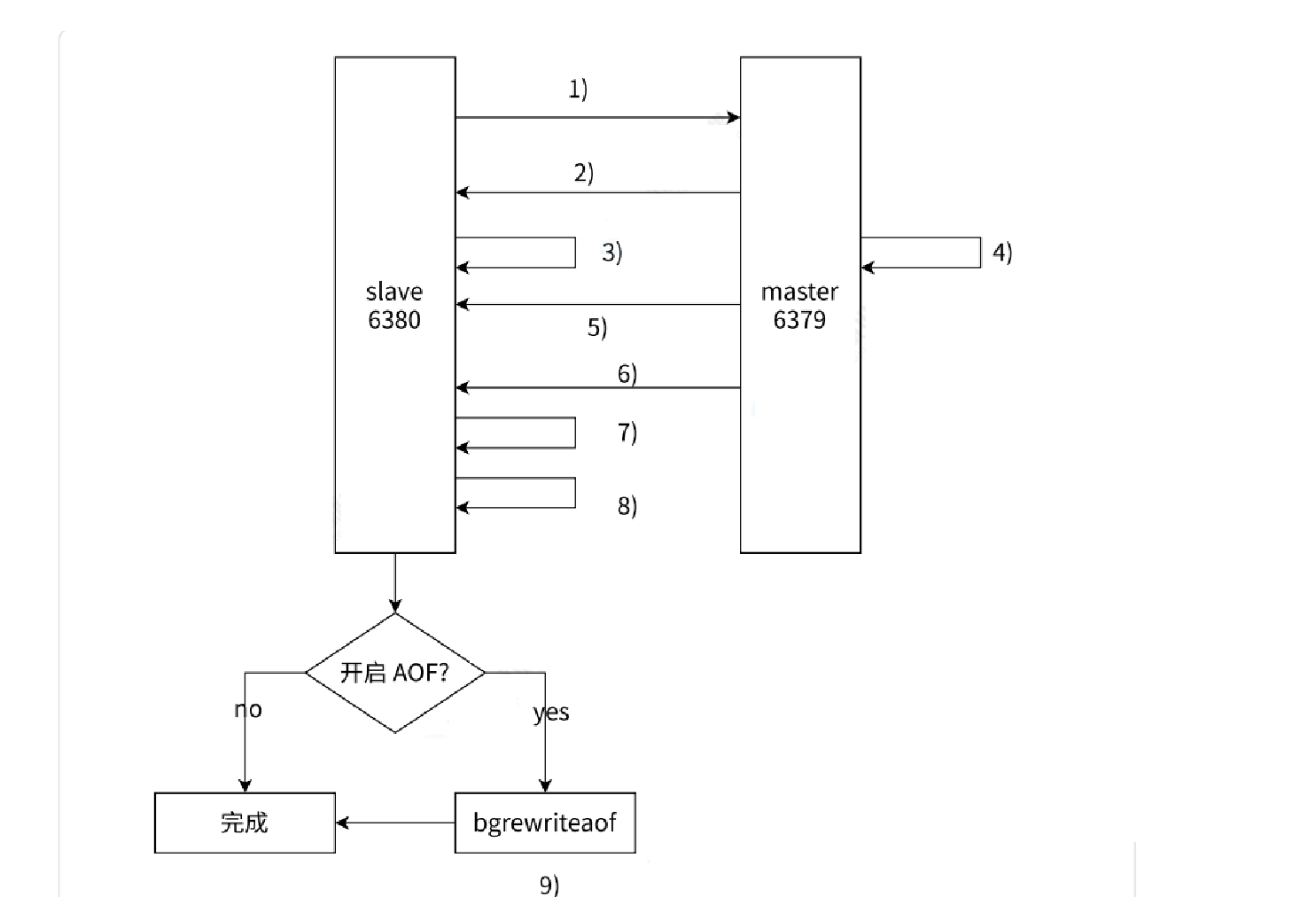 9)如果从节点加载 RDB 完成之后,并且开启了 AOF 持久化功能,它会进行bgrewrite 操作,得到最近的 AOF ⽂件。