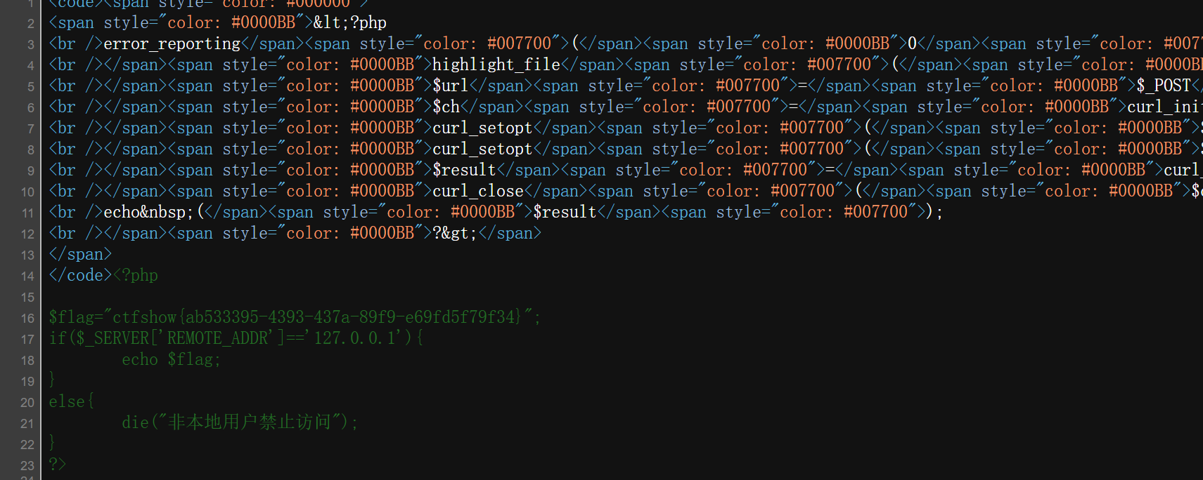 然后这里的flag.php文件也说明了非本地禁止访问,于是也可以如下构造: