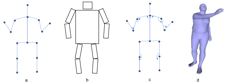 - 骨架(Skeleton):关节点通过肢体连接形成的结构