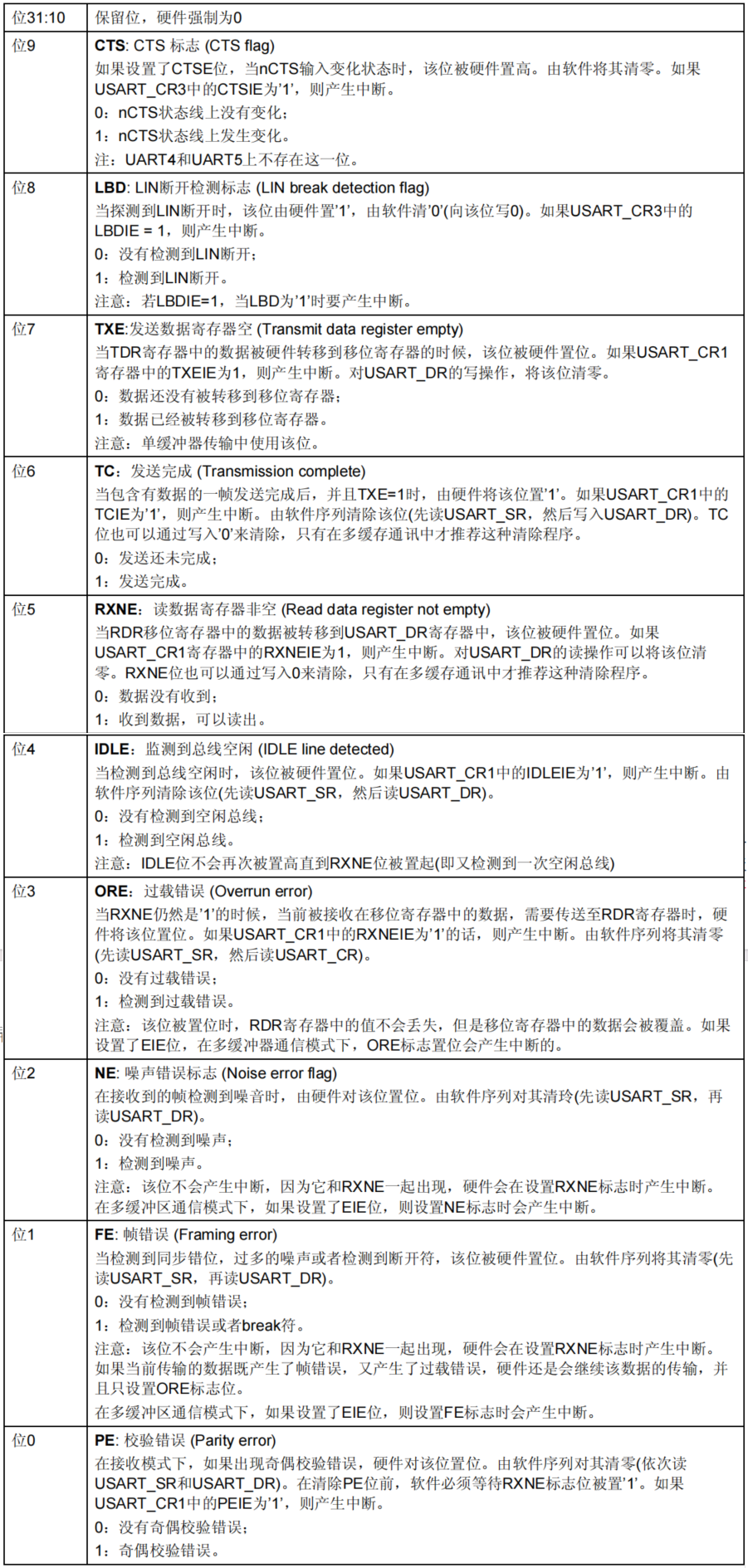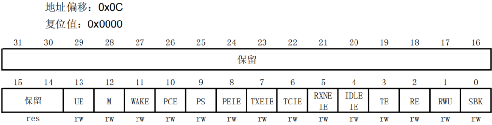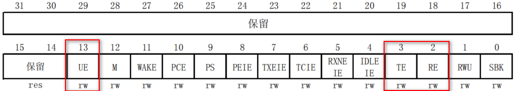 UE、TXEIE、TCIE、RXNEIE、IDLEIE、TE、RE