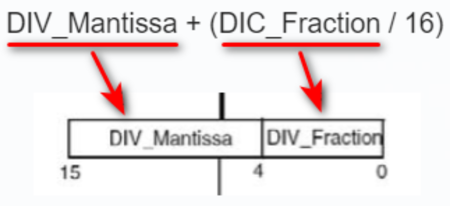 39.0625 = DIV_Mantissa + (DIC_Fraction / 16)