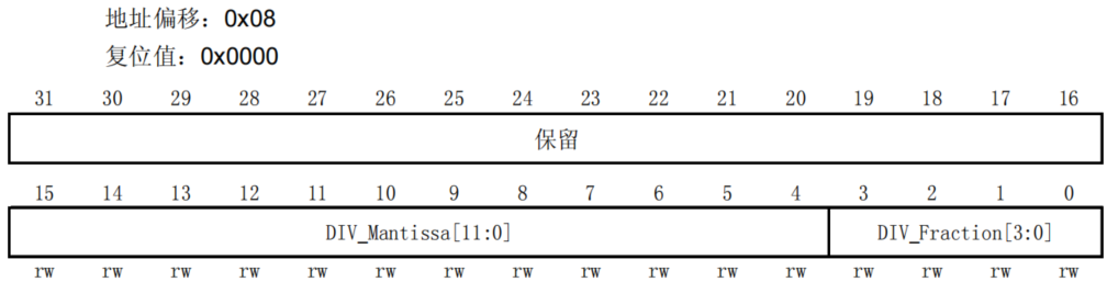 2.波特率设置寄存器 (USART_BRR)