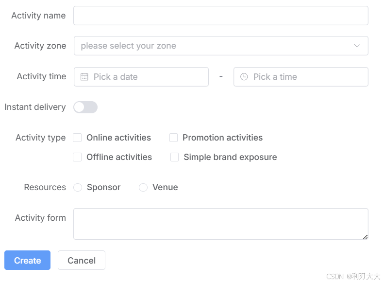 <el-form-item label="Activity zone">