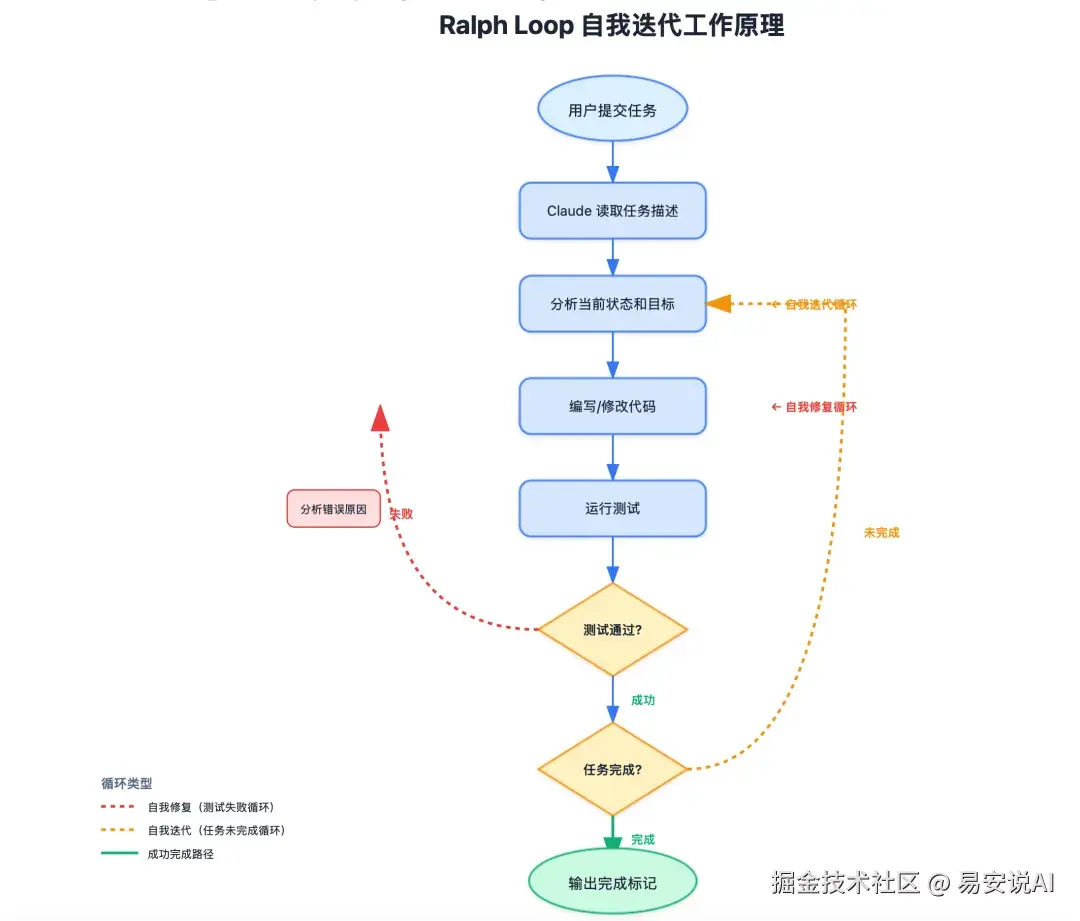 Ralph Loop 是 Claude Code 的一个插件,实现了自我迭代的 AI 开发循环。简单说就是给 AI 一个任务,它会不断尝试、测试、修复,直到完成。特别适合配合 BMAD 敏捷框架使用,一次性完成整个 Epic 的多个用户故事。