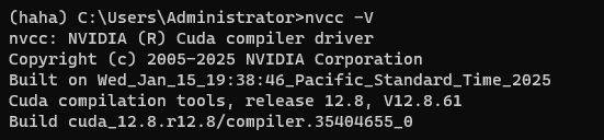 nvcc -V查看是否安装了cuda,若报错,还需要去安装cuda工具包,这一步要注意版本匹配