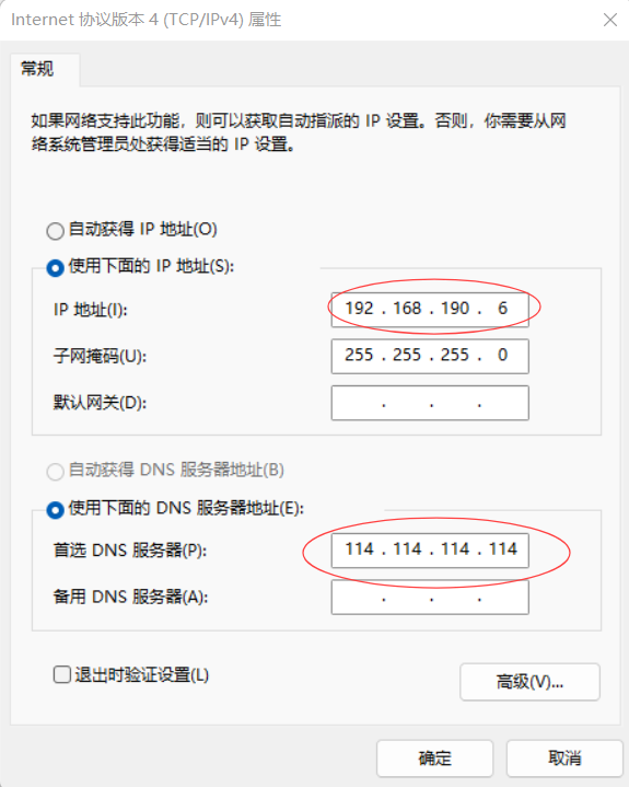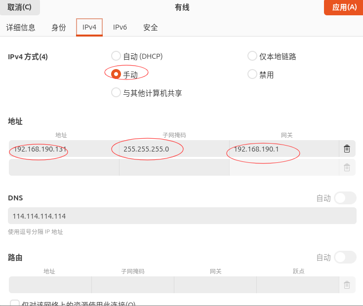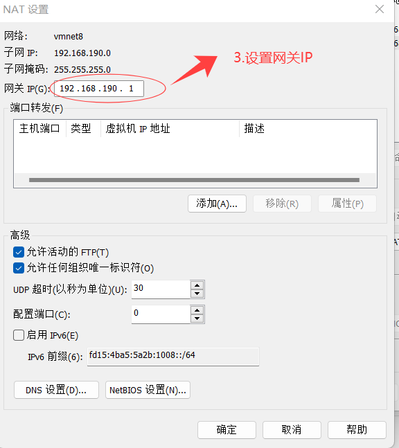 IP地址必须是步骤二的子网范围内的ip,但是不能和其他Ip相同,网关为第三步的网关