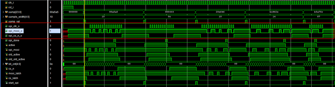 ,output reg spi_mosi_o // SPI master-out-slave-in data bit