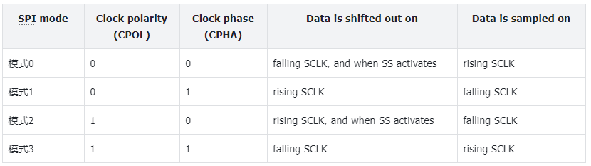 根据CPOL和CPHA的不同组合,形成了四种标准的SPI模式。理解下图是掌握SPI时序的关键: