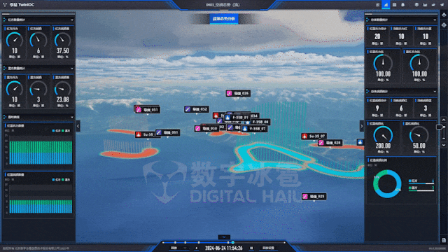 支持与数字冰雹 孪易 IOC 一键集成,构建写实三维推演仿真应用。通过高保真三维建模与多光谱传感器仿真,实现战场环境的立体化还原。用户可多视角、多模态观察战场态势,获得亲临其境的决策沉浸感。