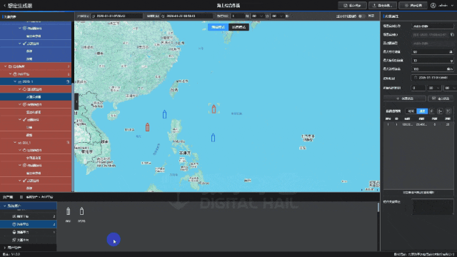 2.海战想定:覆盖水面舰艇、潜艇、舰载机等海战力量,从单舰巡逻到航母编队护航,想定构建一目了然。可模拟洋流、海浪、海雾等海洋环境对作战的影响,水下更可模拟潜艇隐蔽接敌的完整流程。