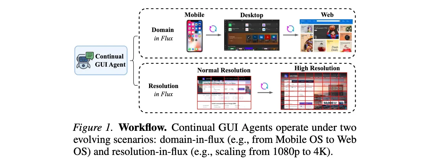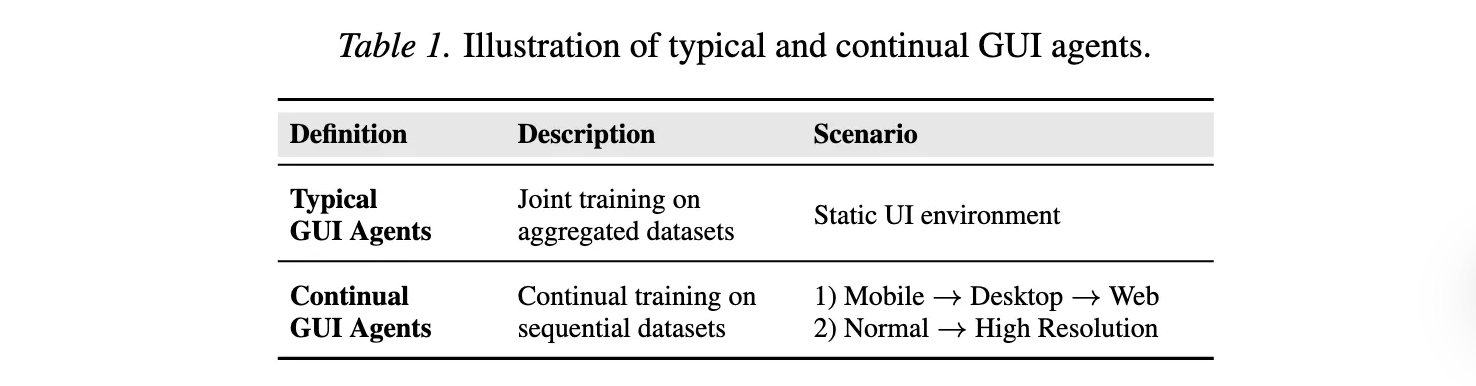 - 缺乏持续学习框架:目前尚无针对GUI智能体的持续学习框架,无法有效处理域迁移和分辨率变化等动态场景。