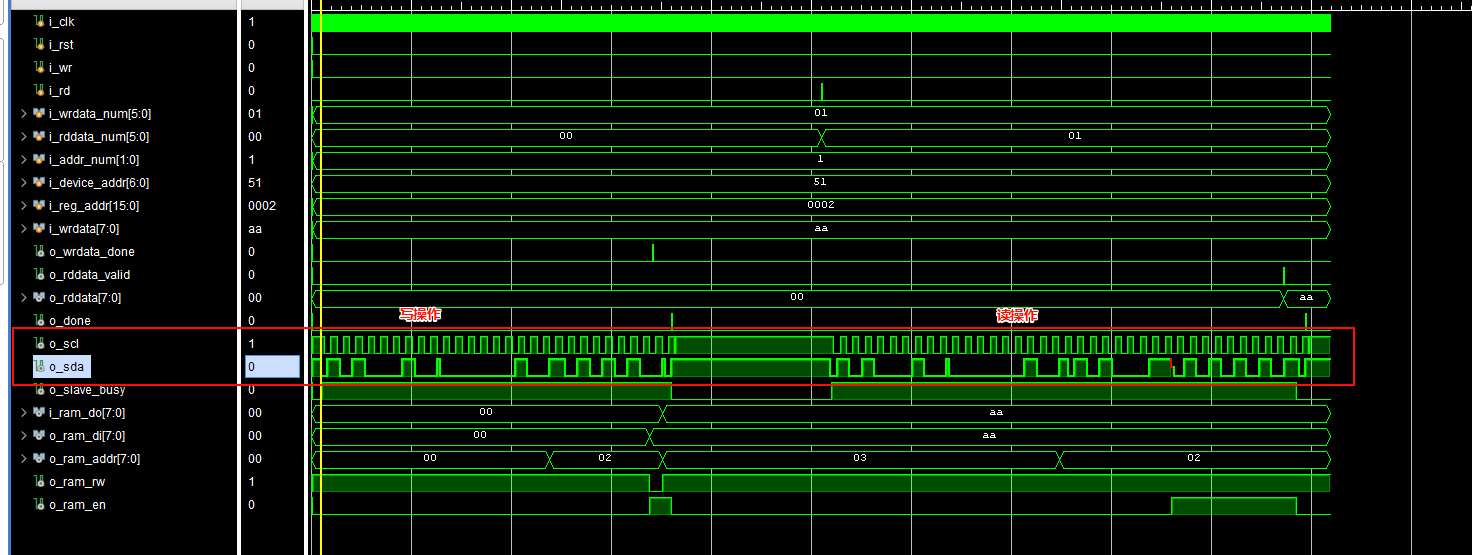 - 基本握手信号: 提供了 o_wrdata_done(写完一个字节)、o_rddata_done(读到一个数据)和 o_done(整个事务结束)标志,便于上层模块进行时序控制。
