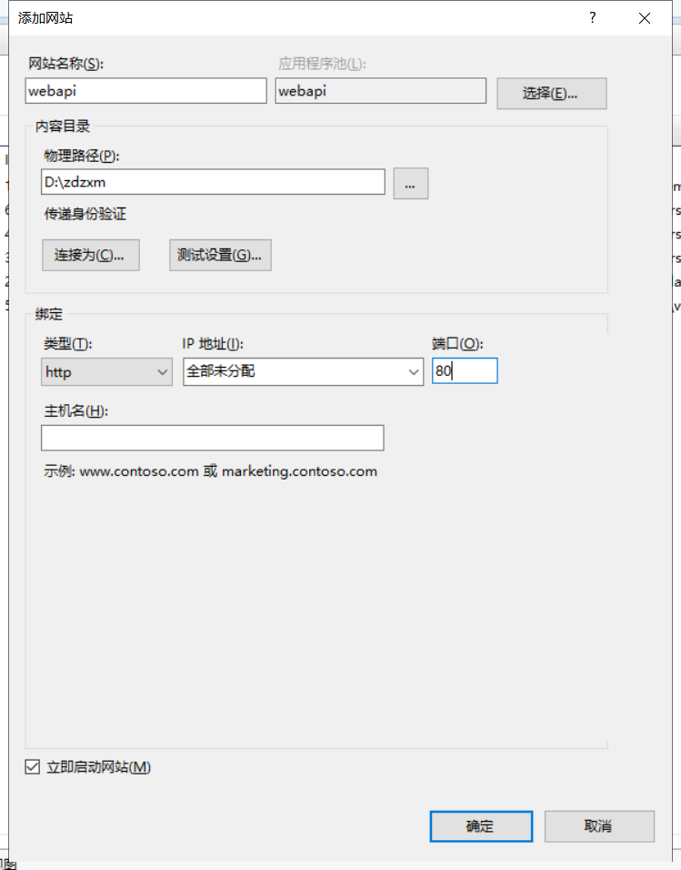 物理路径:选择刚才发布后的文件夹