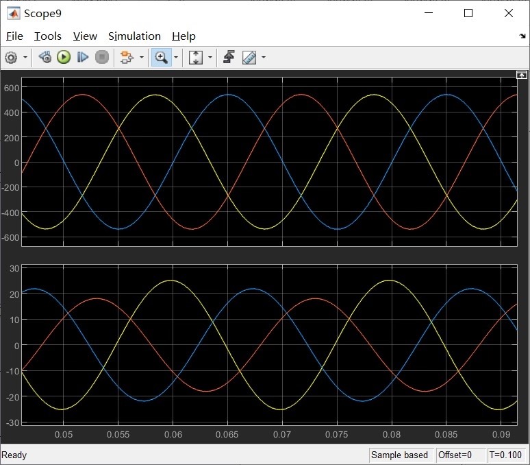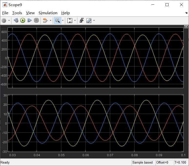 最后上SVPWM调制部分,三电平的扇区判断比两电平复杂得多。分享个快速判断技巧:先计算三个参考电压分量,然后用符号函数确定区域。仿真时遇到个诡异现象------轻载时输出电压总在过零点抖动。后来发现是死区时间设置不合理,把死区从2us调整到1.2us后波形立马光滑如丝。