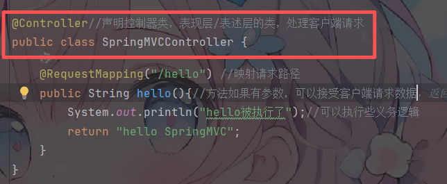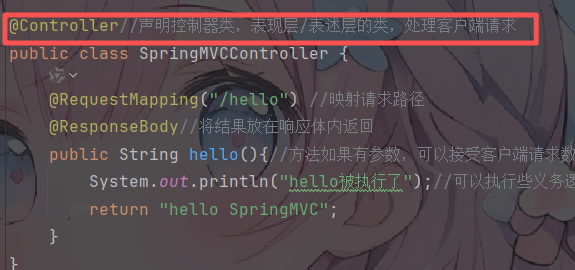 //声明控制器(处理器)类组件,表现层/表述层的类,处理客户端请求