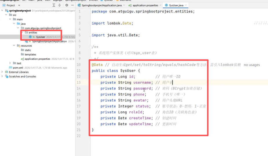 跟表进行映射的类,都叫实体类。以后是可以通过工具生成的,不用自己写。一个表都会对应一个实体类!!