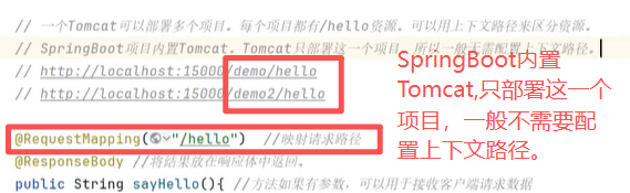 2)SpringBoot项目内置Tomcat,Tomat只部署这一个项目,所以一般无需配置上下文路径