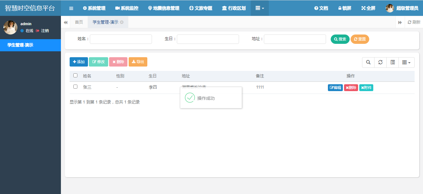 将信息输入完毕后,点击确定进行信息的保存。第一次时提示保存成功,如下图: