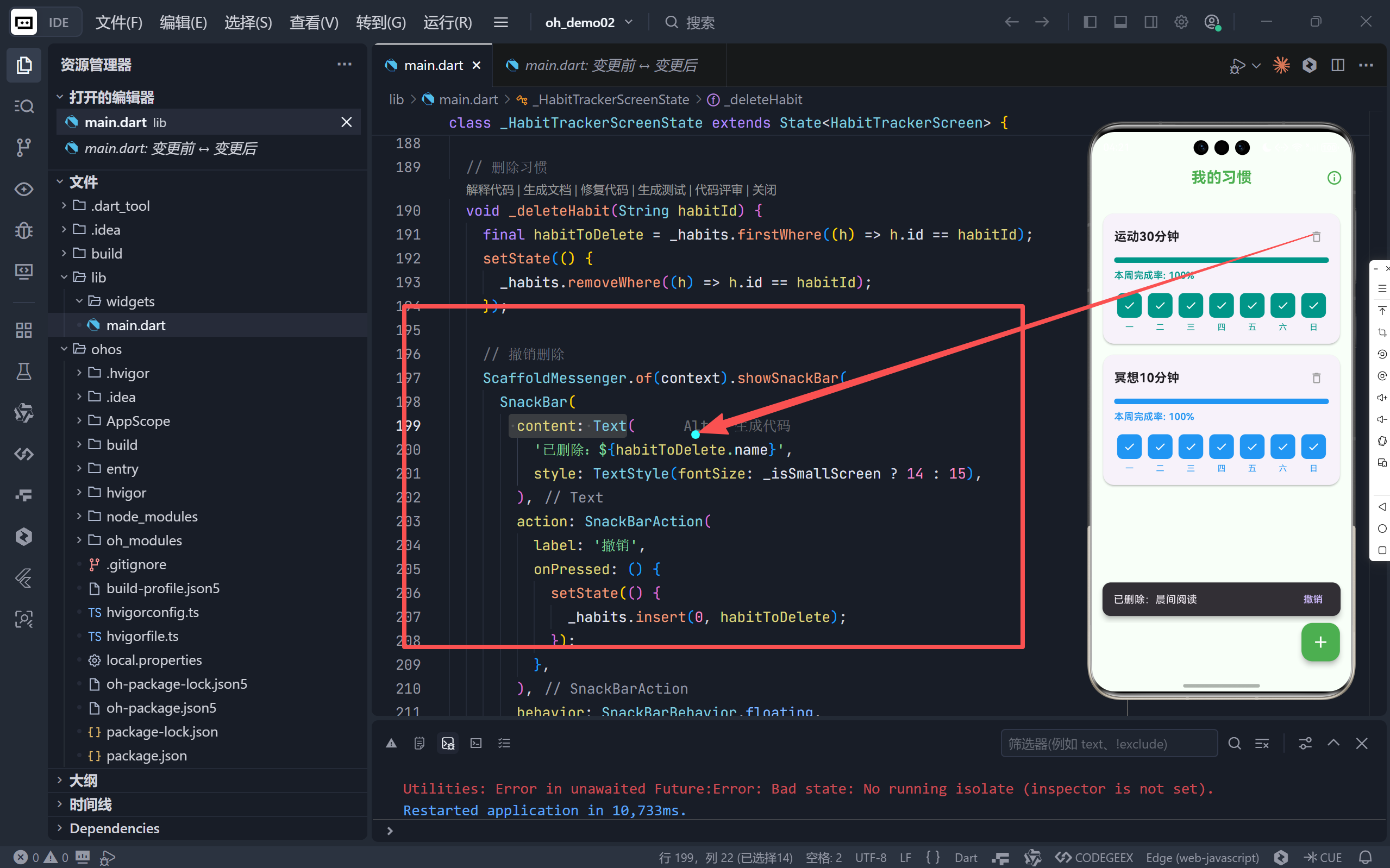 hive或shared_preferences保存习惯数据; - 通知提醒 :使用
