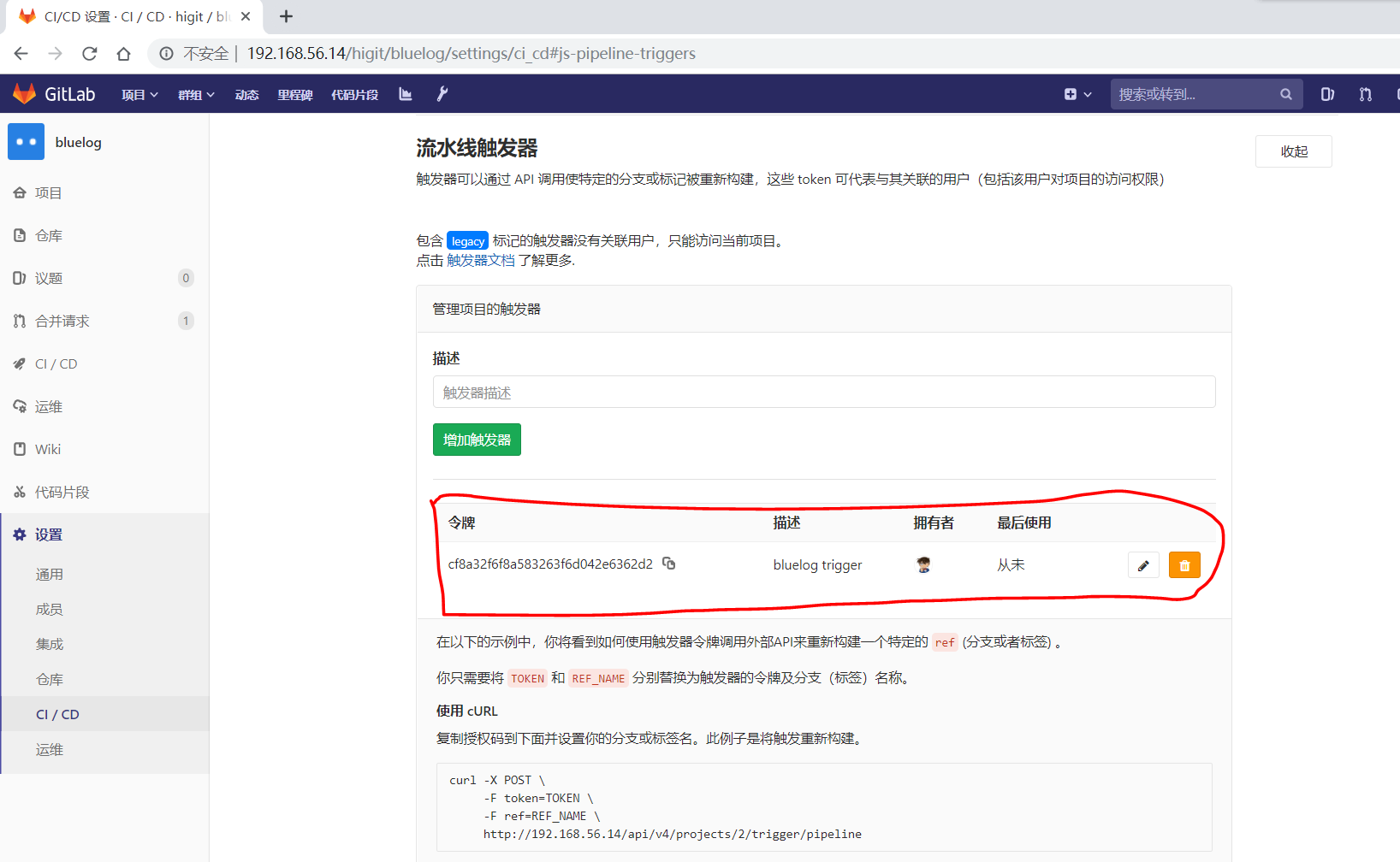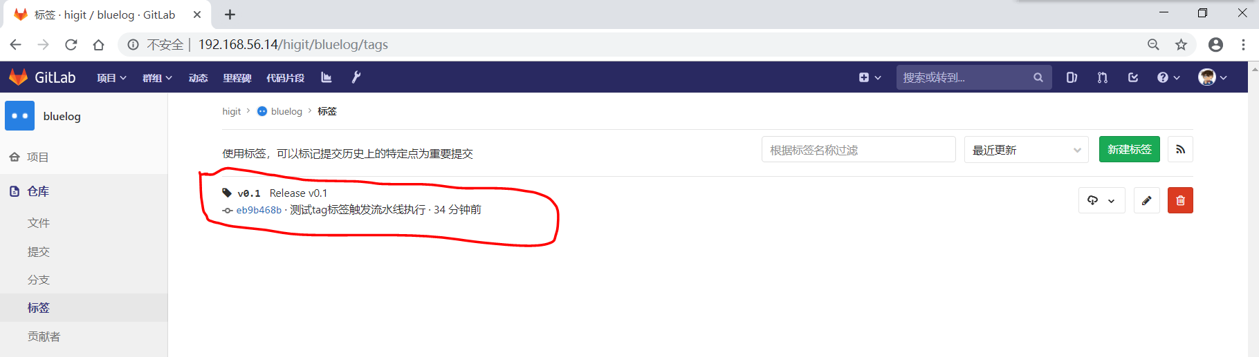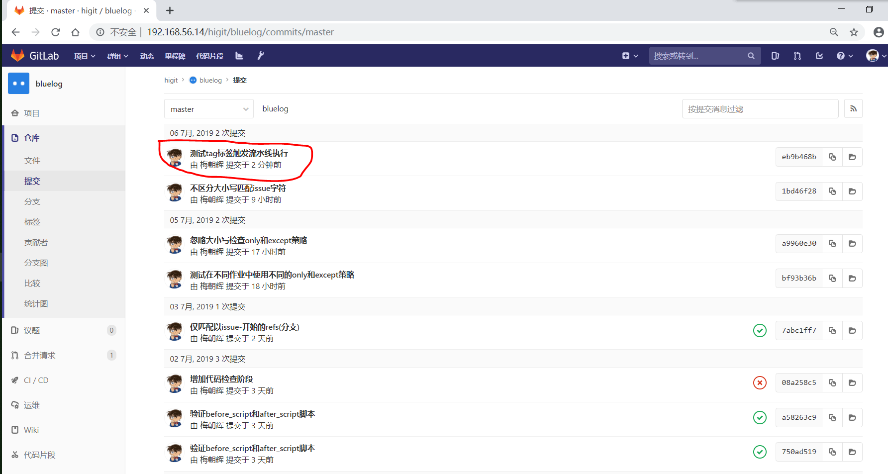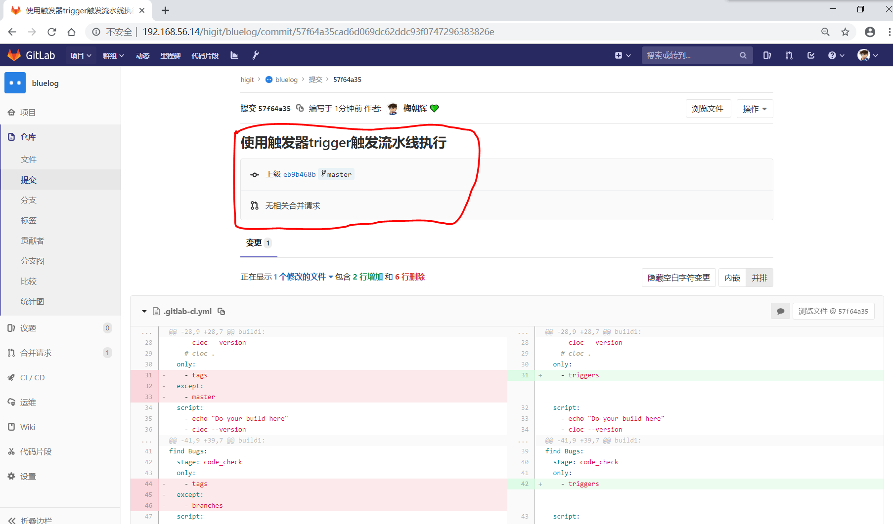 可以发现流水线没有被触发,但是提交已经创建成功了: