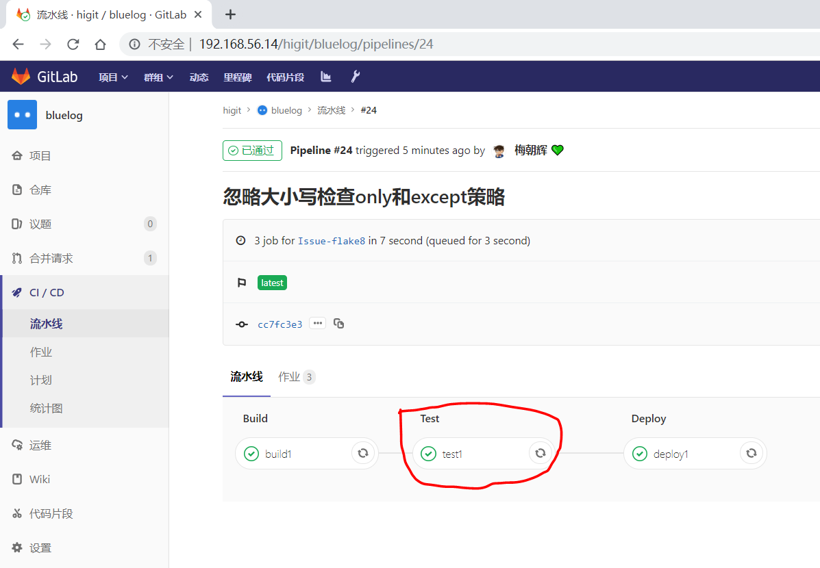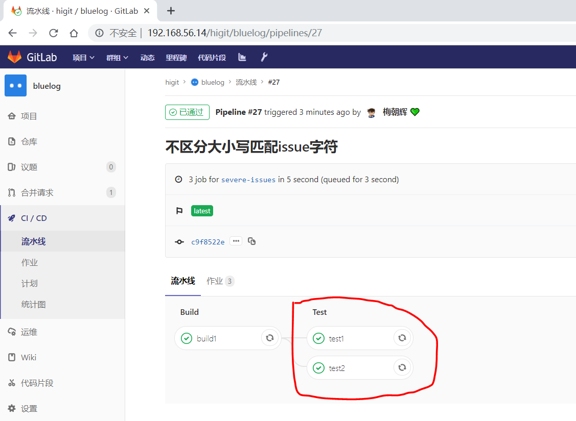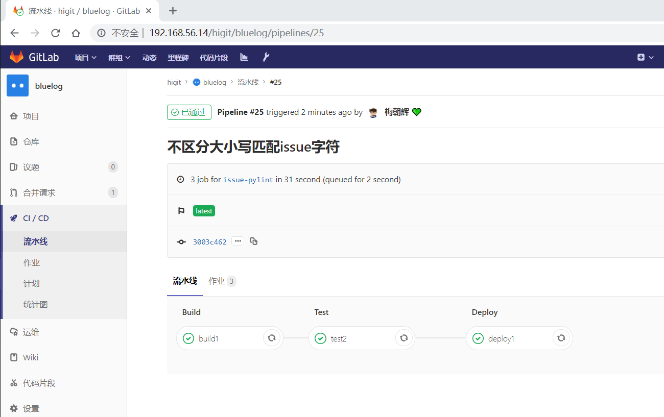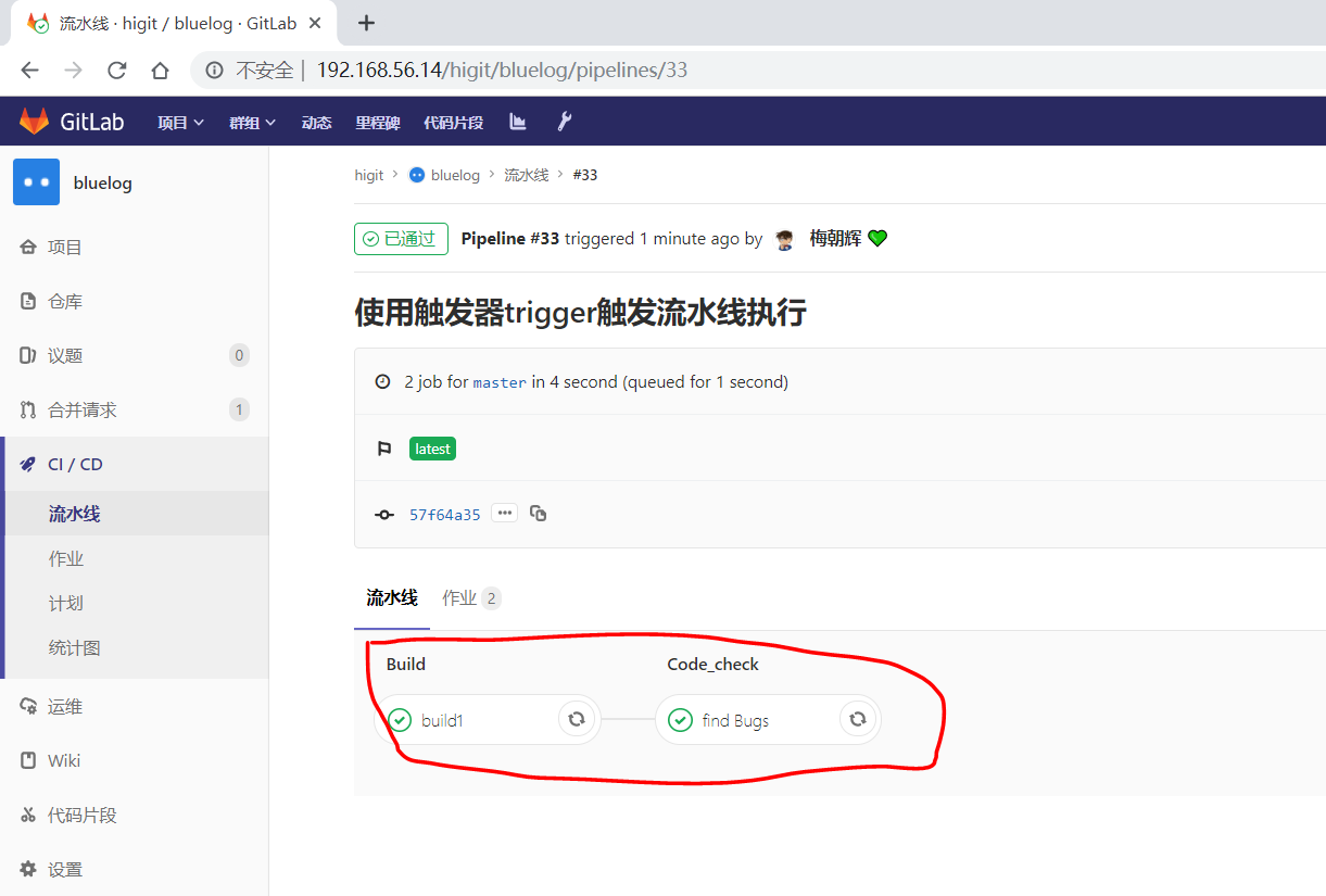 但是发现流水线被触发了,正常运行了: