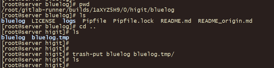 此时可以看到,作业开始运行了,并且在/root/gitlab-runner/builds目录下生成了四个folder相关的目录: