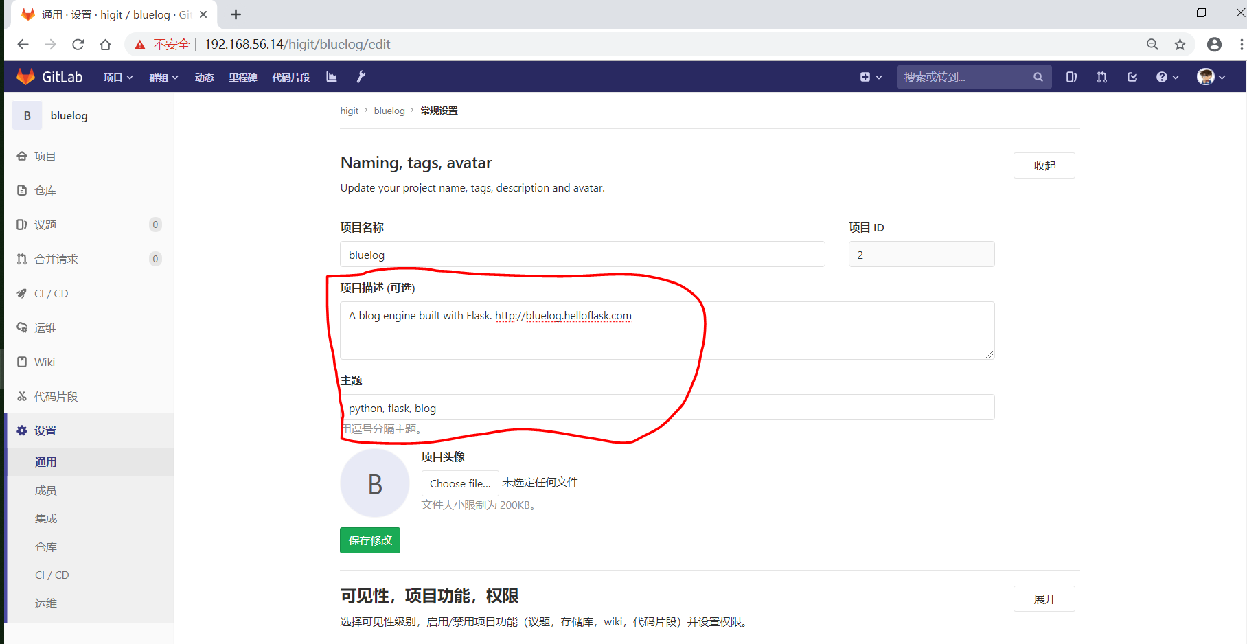 GitLab WEB网站地址: http://192.168.56.14