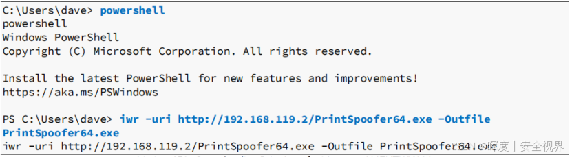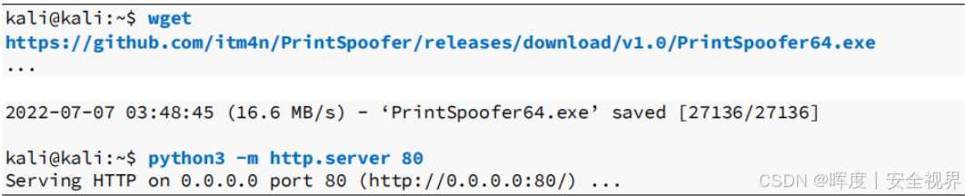 Invoke-WebRequest(或iwr)从 Kali 下载工具: