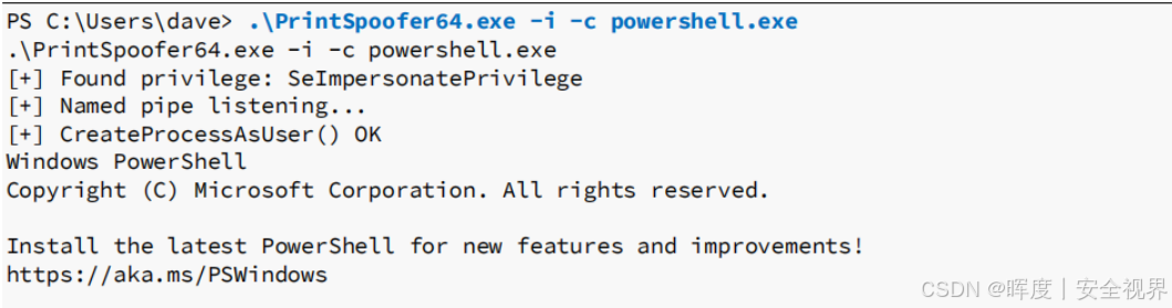 **注意:**在攻击中,我们不需要手动创建命名管道,PrintSpoofer工具已经封装了这些操作。我们只需要提供要执行的命令即可。