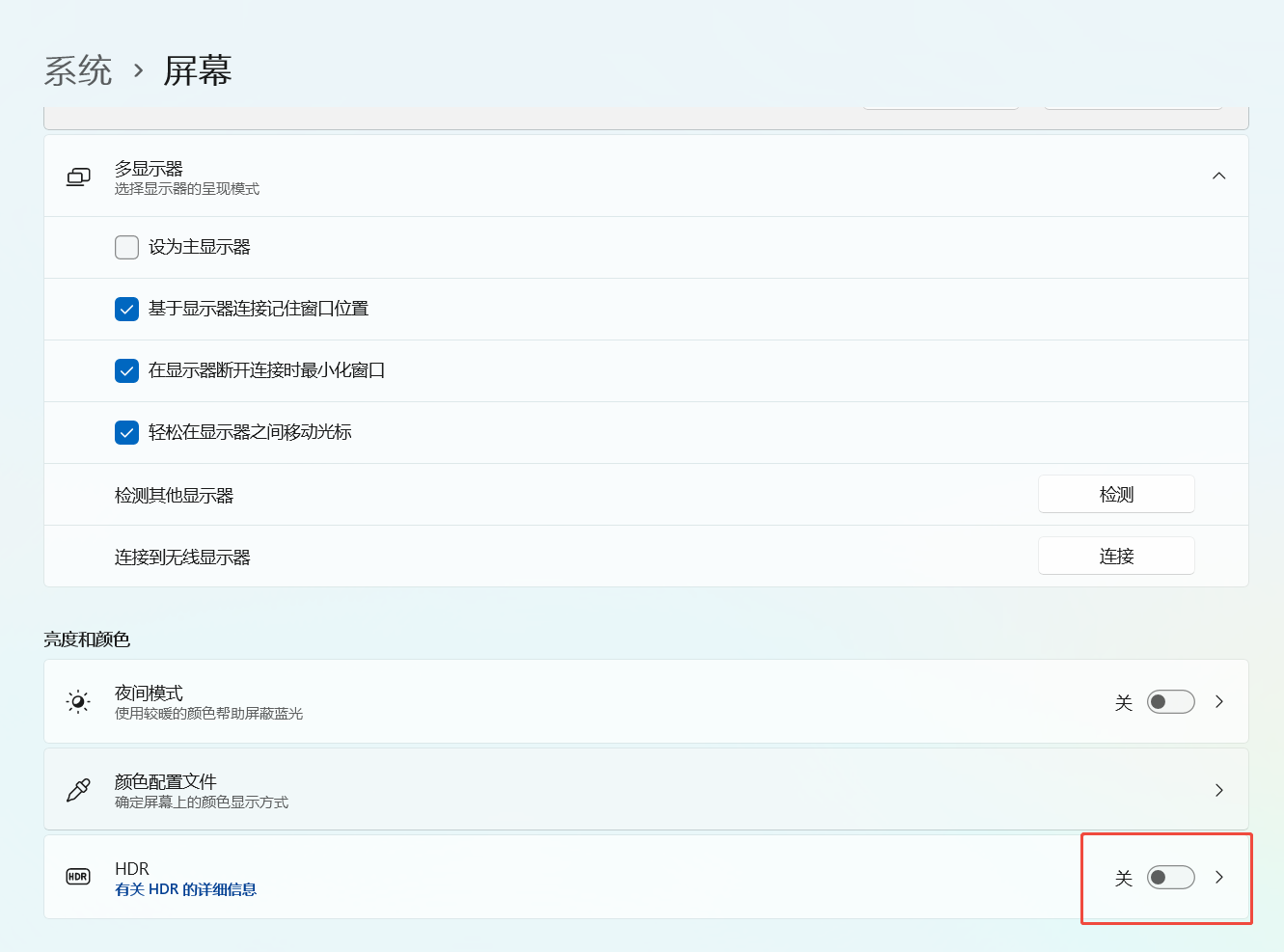 使用快捷键 Win+Alt+B 组合键,一键关闭HDR。然后再设置显示频率,正常扩展显示器。