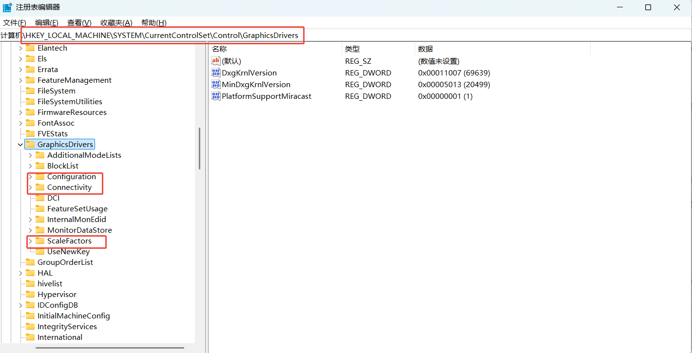 Win+R** 输入 regedit,搜索:HKEY_LOCAL_MACHINE\SYSTEM\CurrentControlSet\Control\GraphicsDrivers -