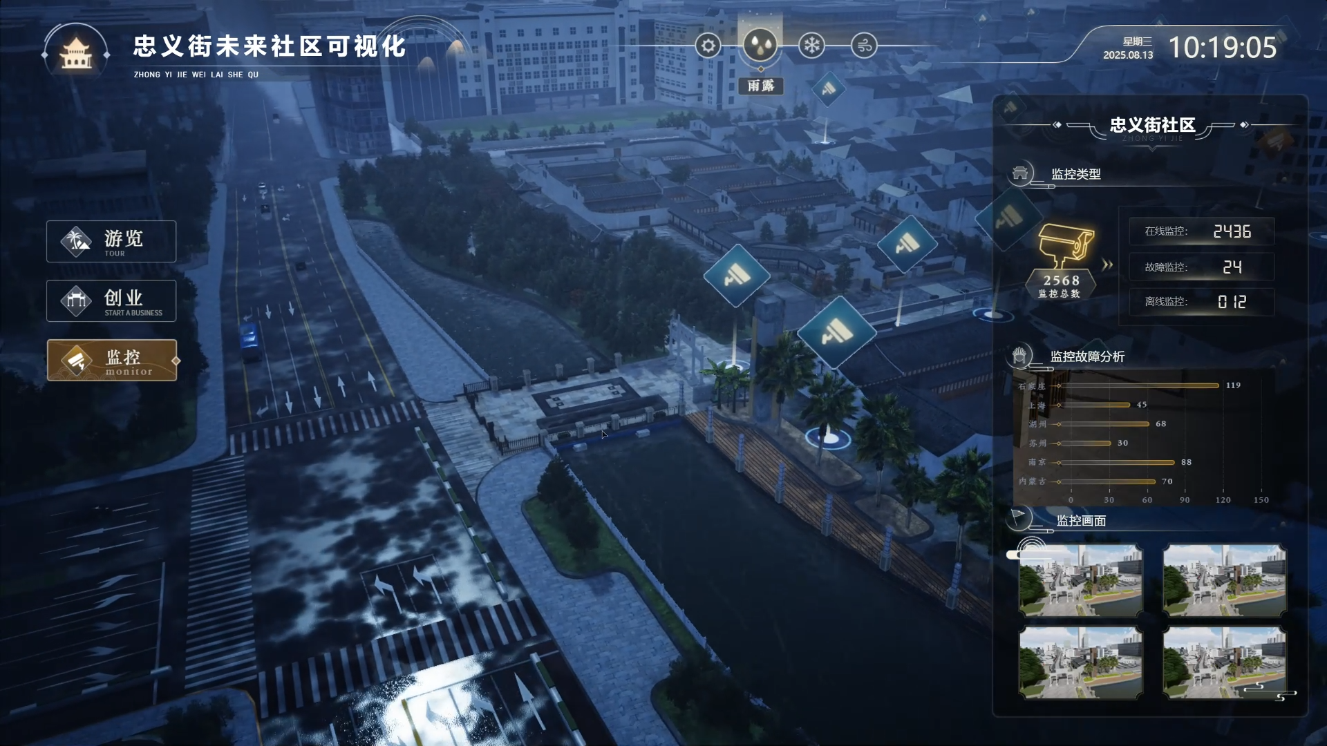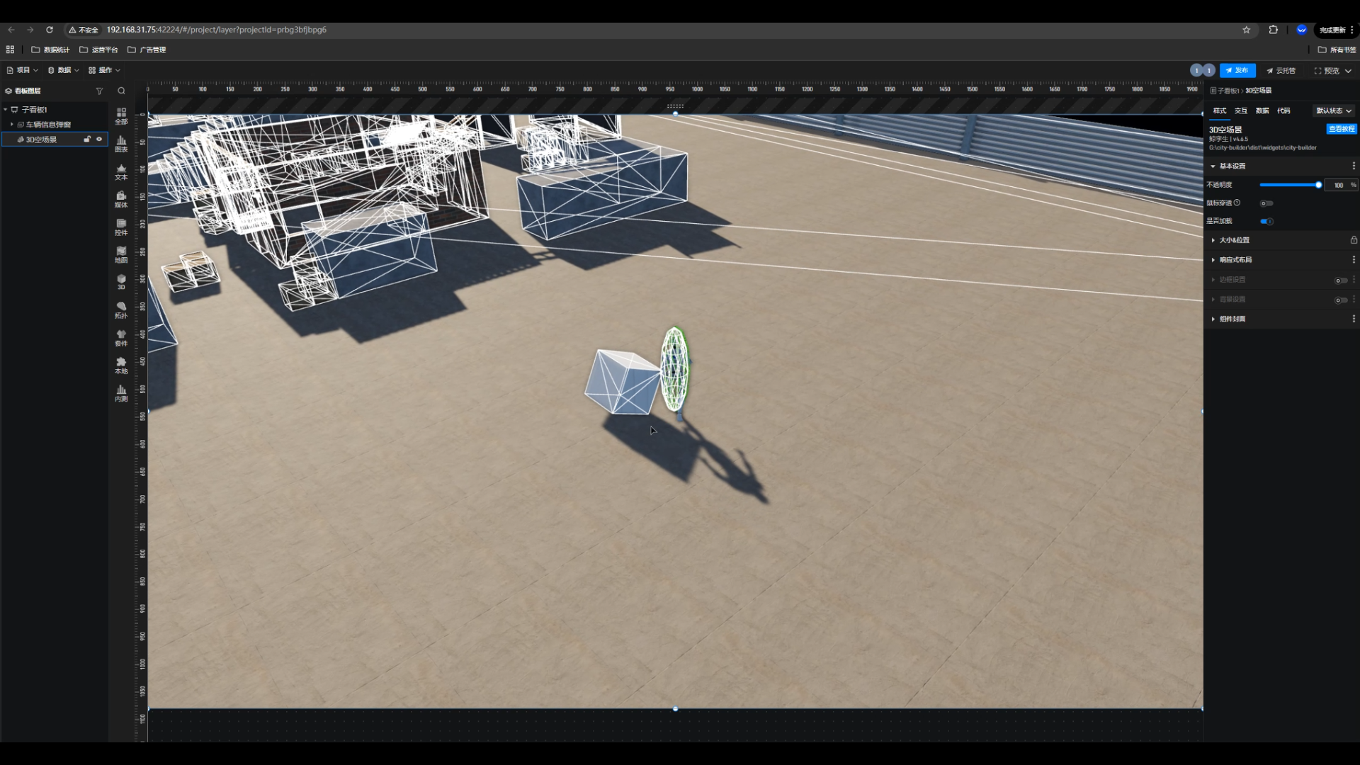 同时,我们在三维交互方式上迈出了重要一步。通过引入第三人称相机系统,用户可以在三维场景中以 WASD 与空格键的方式,控制机器人、热气球等对象进行移动。这一功能的加入,使数字孪生从静态展示升级为可探索、可操控的沉浸式空间,极大拓展了平台在虚拟巡检、数字培训、仿真推演等领域的应用边界。