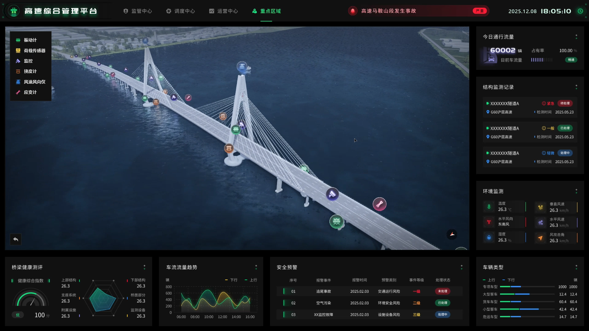 在城市交通领域,山海鲸可视化围绕交通运行态势感知与仿真分析,持续深化数字孪生应用能力。平台将道路路网、交通设施、车辆运行数据与三维场景进行深度融合,通过高真实感的光影效果、自然视角切换以及可操控的交通要素,构建贴近真实运行状态的交通数字孪生系统,为交通调度与指挥决策提供更加直观、可靠的支撑。
