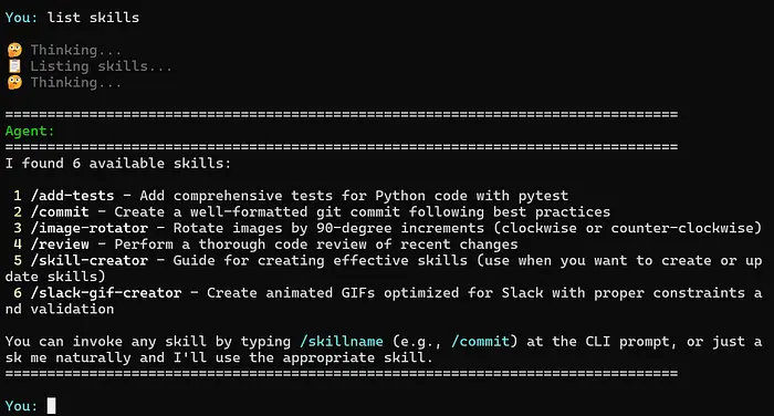 你可以使用skills-creator技能为代理创建新技能,然后简单地将它们放到~/.patchpal/skills文件夹中供PatchPal使用。(Anthropic还维护着一个更大的代理技能公共存储库,所有这些都与PatchPal兼容。)