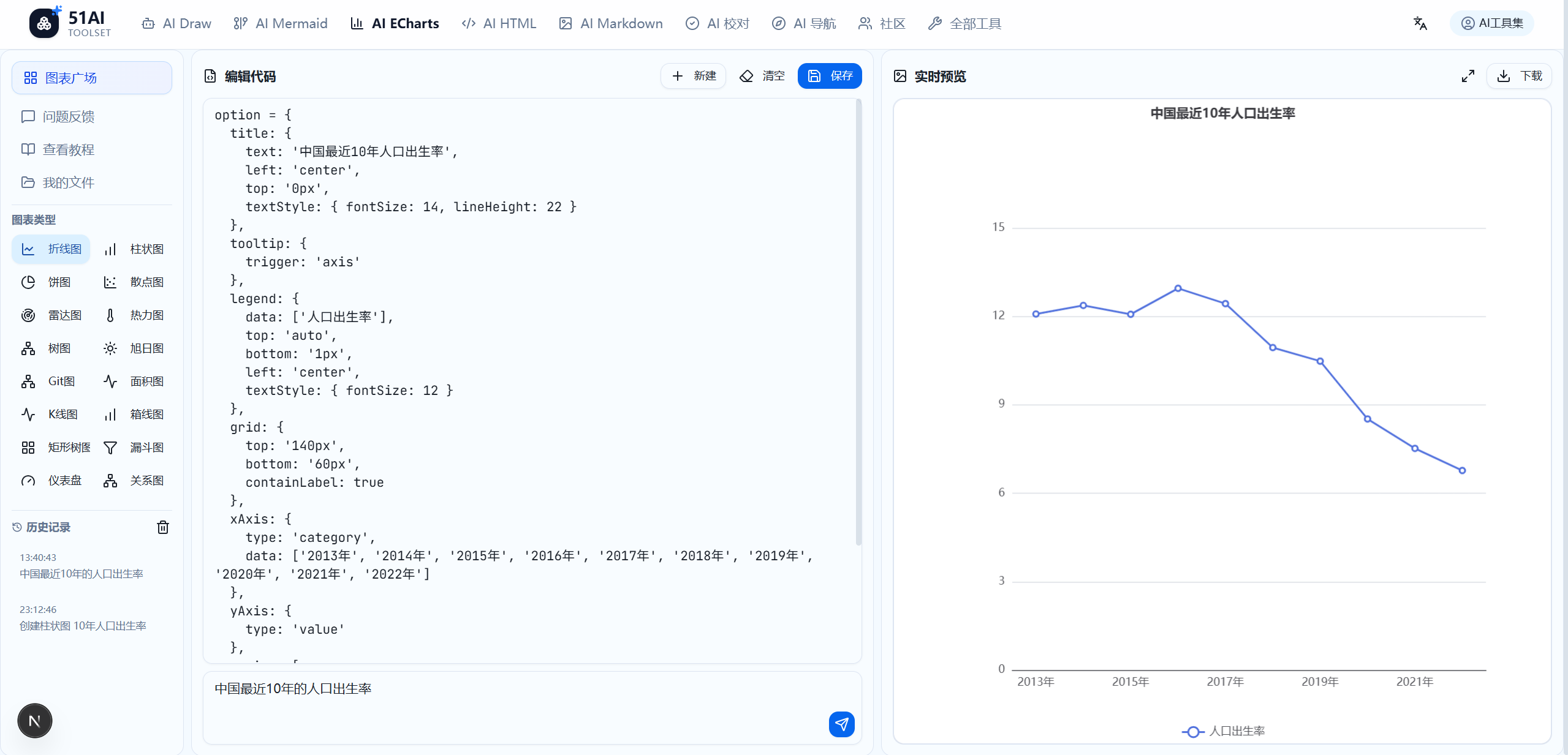 四、通过AI生成echarts图表包括: