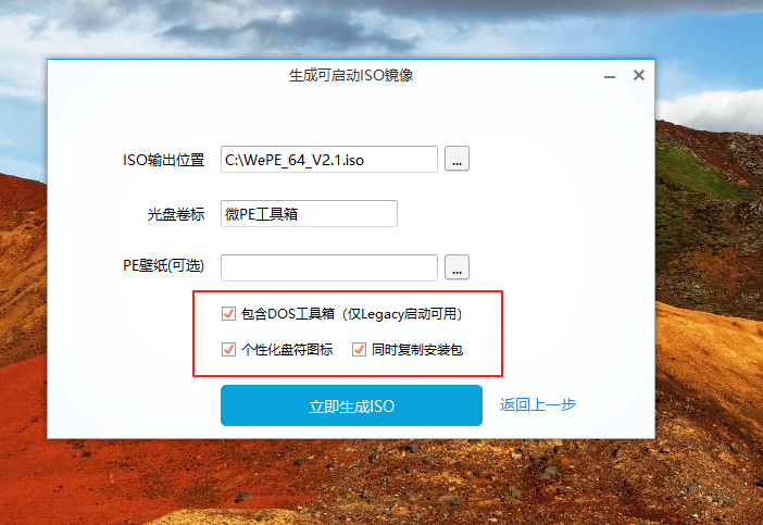 弹出下面的界面, 建议三个选项都选上,点击【立即生成ISO】