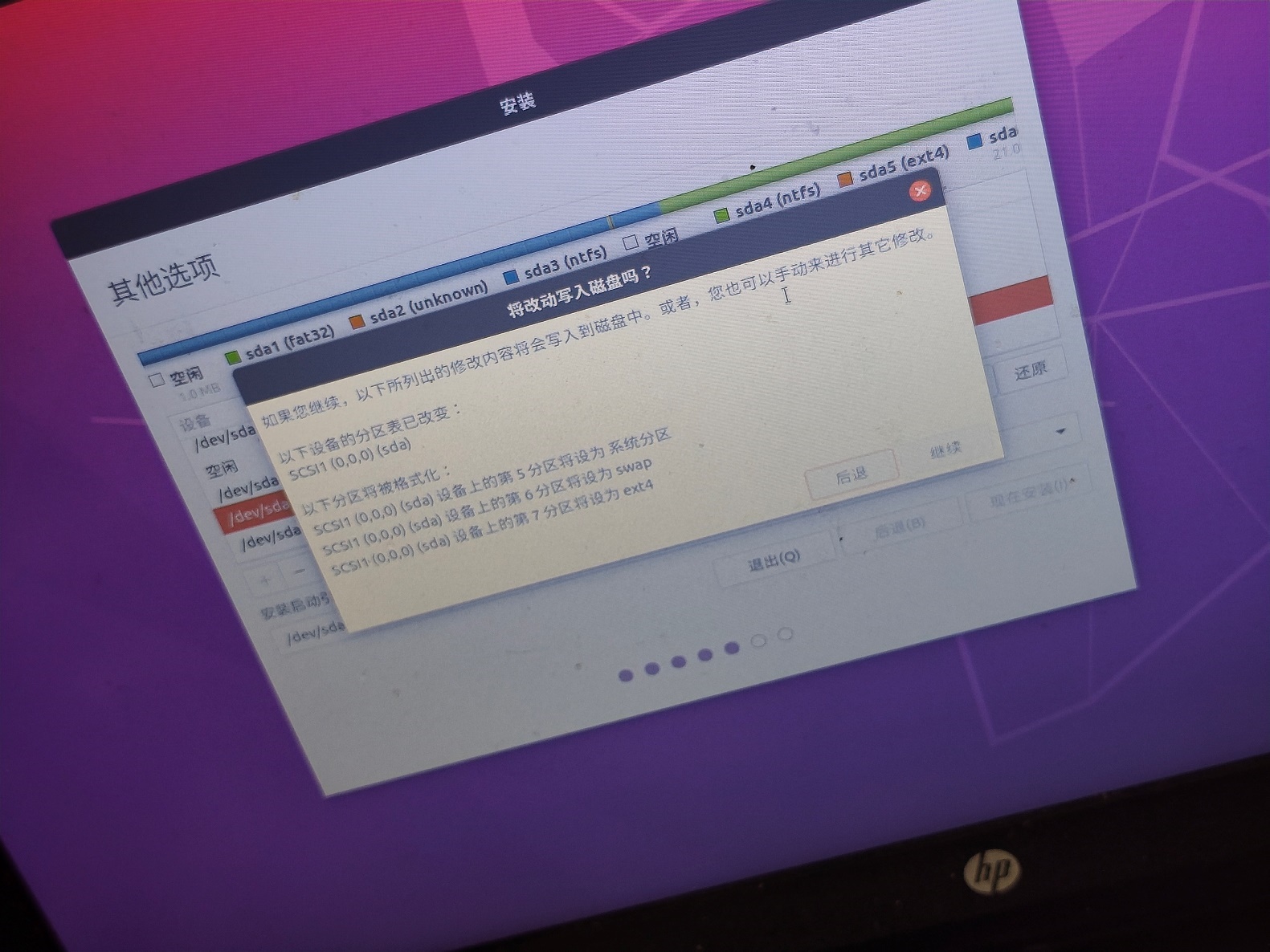 执行【现在安装】弹出【有改动写入磁盘吗?】。