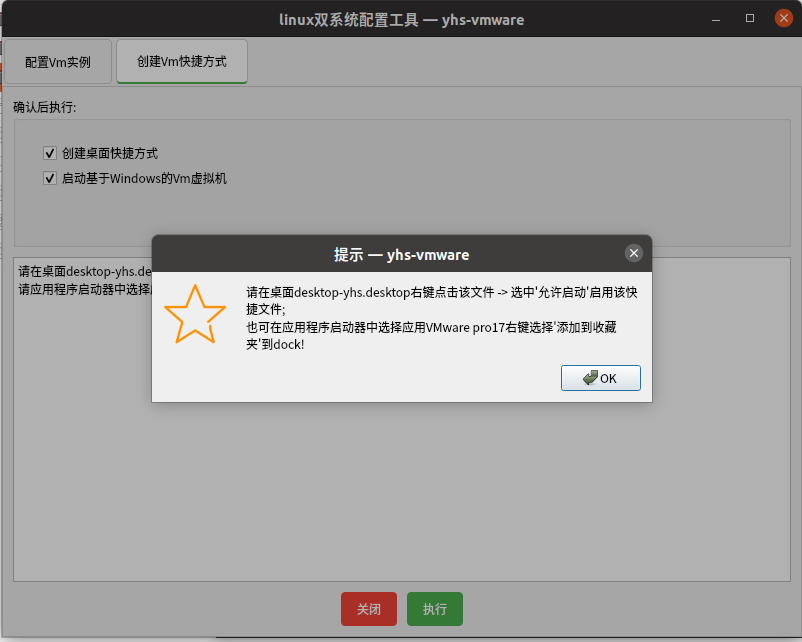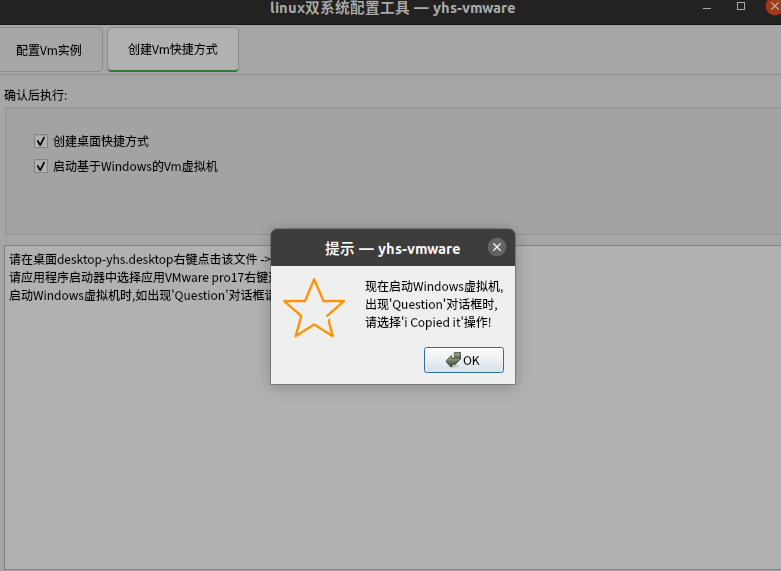 第四步、出现【linux双系统配置工具---yhs-vmware】程序窗口