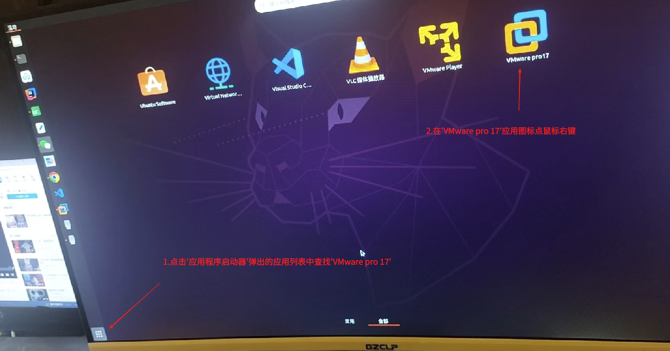 第一步、应用程序启动器中选择应用VMware pro17