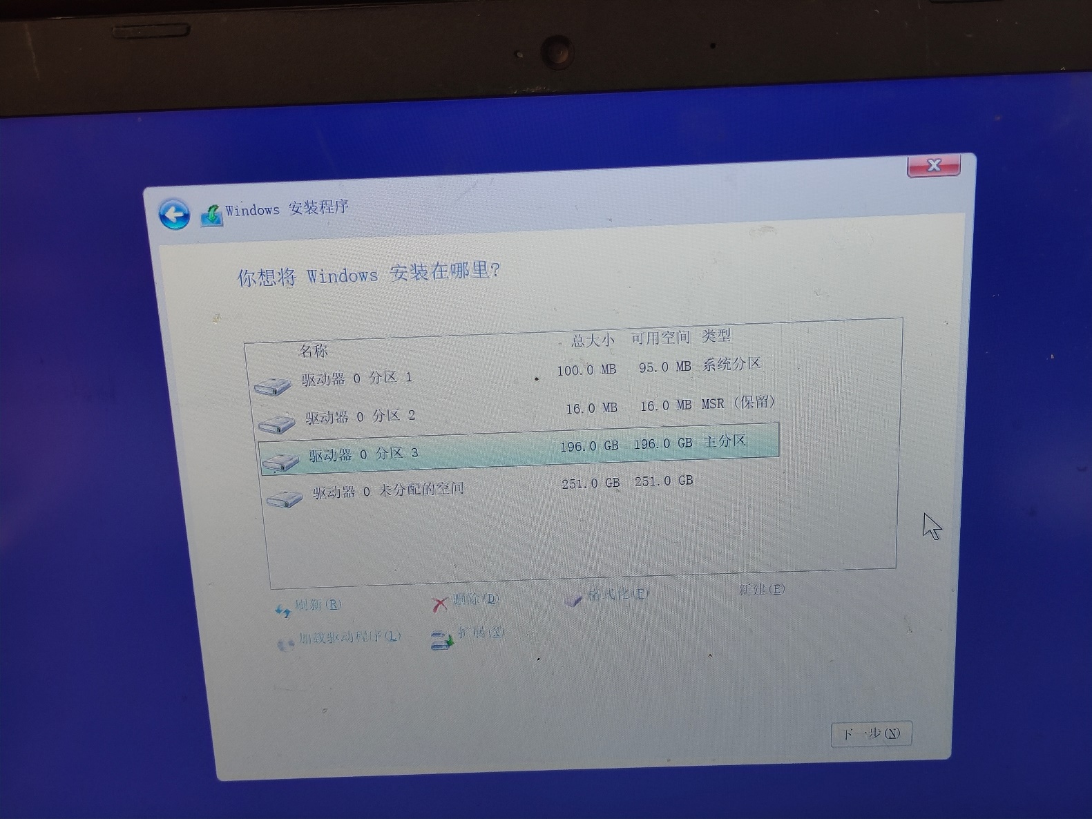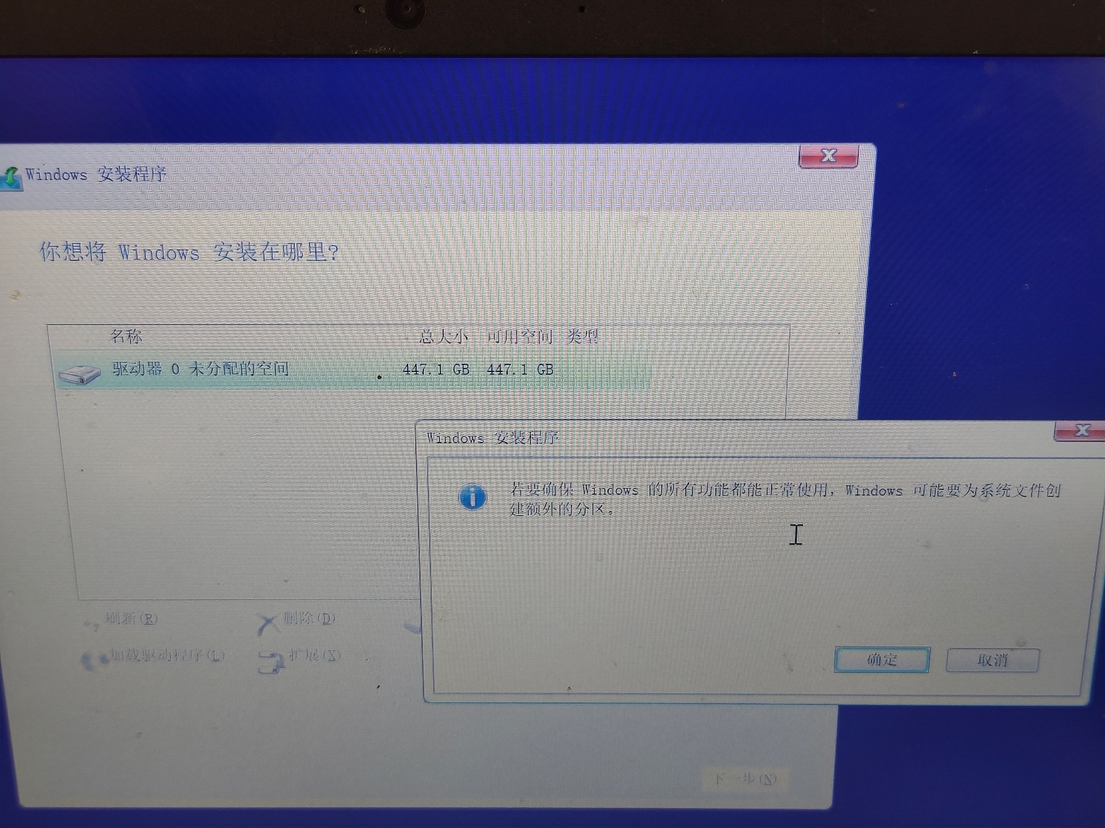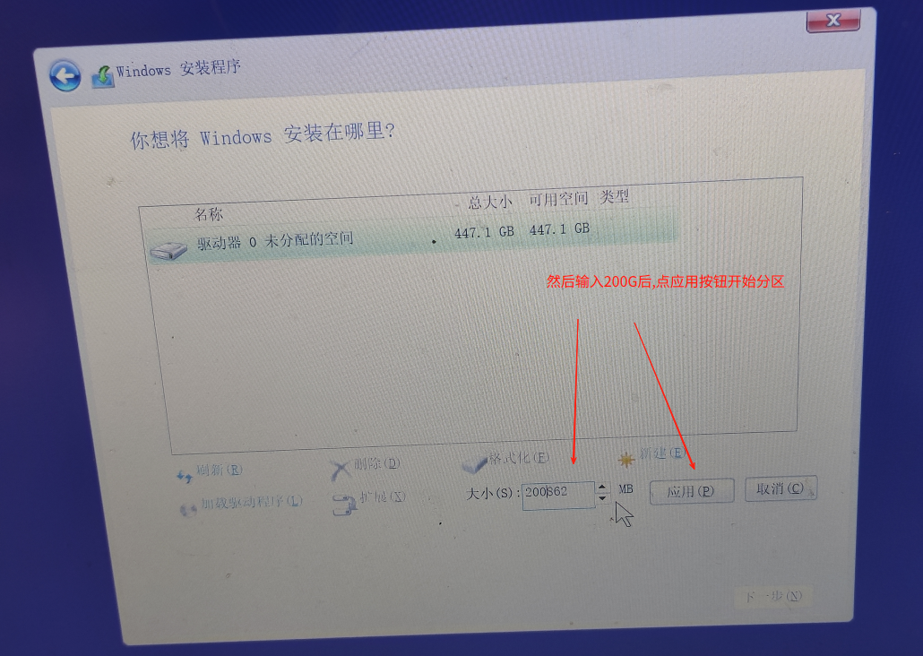 2.1.2.11进入【安装类型】界面的"分区"界面,找到硬盘的空闲区域,先划出500M左右EFI分区, 千万别在U盘上执行错误分区