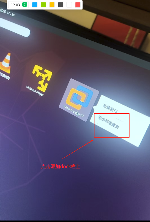 第二步、在VMware pro17应用上右键选择'添加到收藏夹'