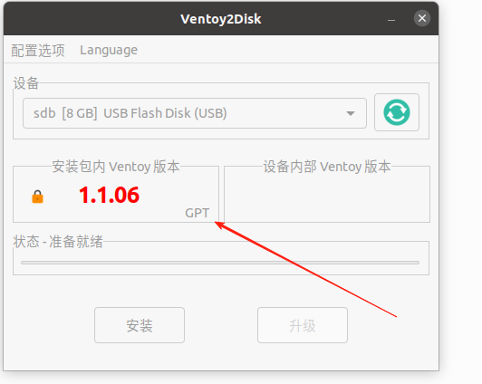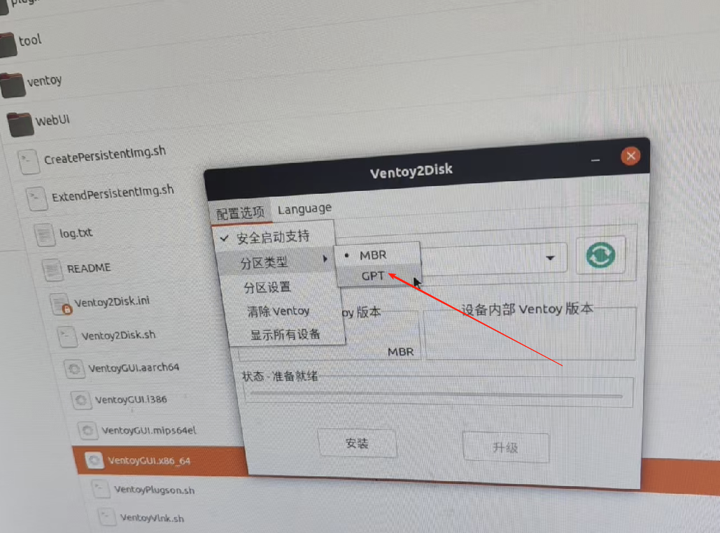 当安装界面【安装包内Ventory版本】框内有【GPT】字样,可以点击【安装】再,