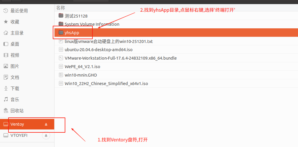 在ubuntu中打开yhsVmApp文件夹