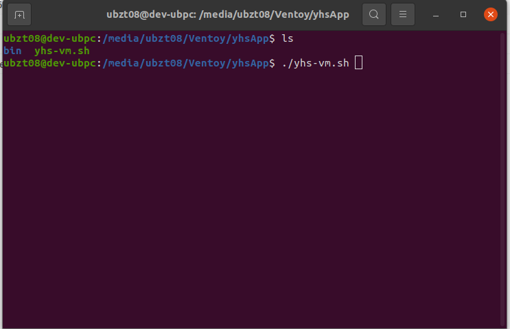 第二步、在打开的终端窗口输入【 ./yhs-vm.sh 】执行