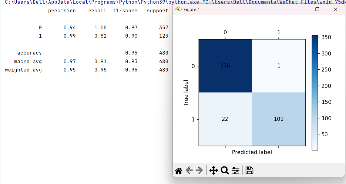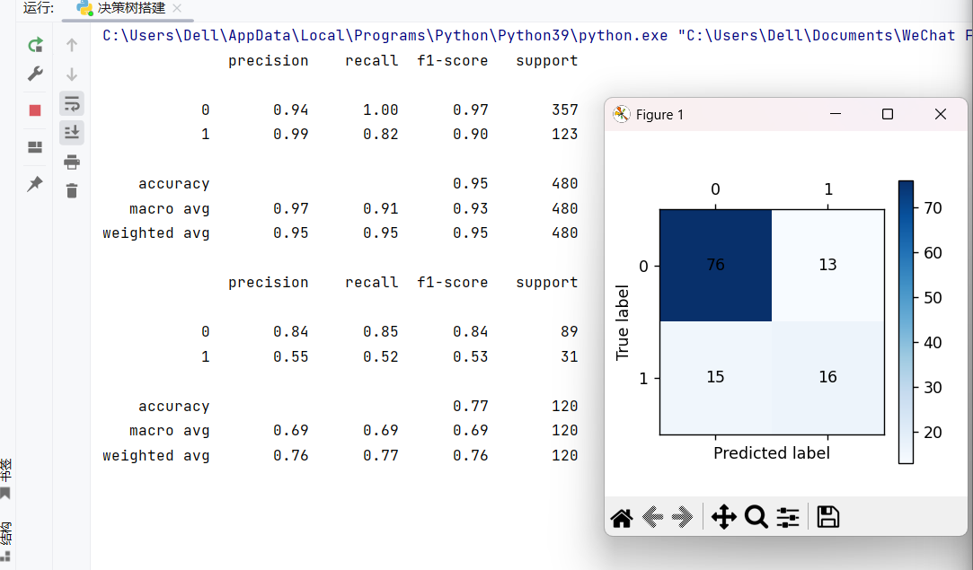 precision(精确率)、recall(召回率)、f1-score(综合得分),测试集得分若远低于训练集,说明模型过拟合; - 混淆矩阵:直观展示真实标签与预测标签的匹配情况,可清晰看到模型在 "流失 / 未流失" 类别上的误判数量;