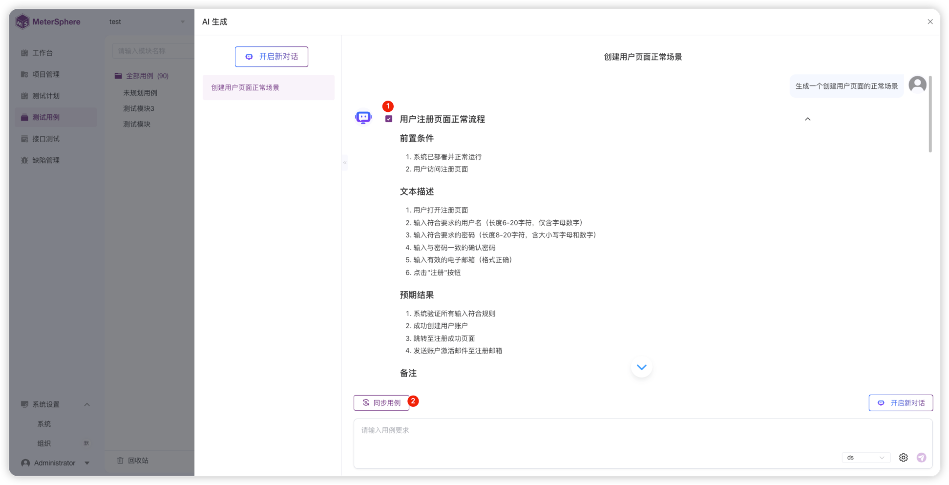 - AI 赋能:内置基于大模型的 AI 助手,支持 AI 生成功能用例、接口用例等,提升测试效率。目前支持 DeepSeek、OpenAI、智普 AI 三种供应商对接模型。